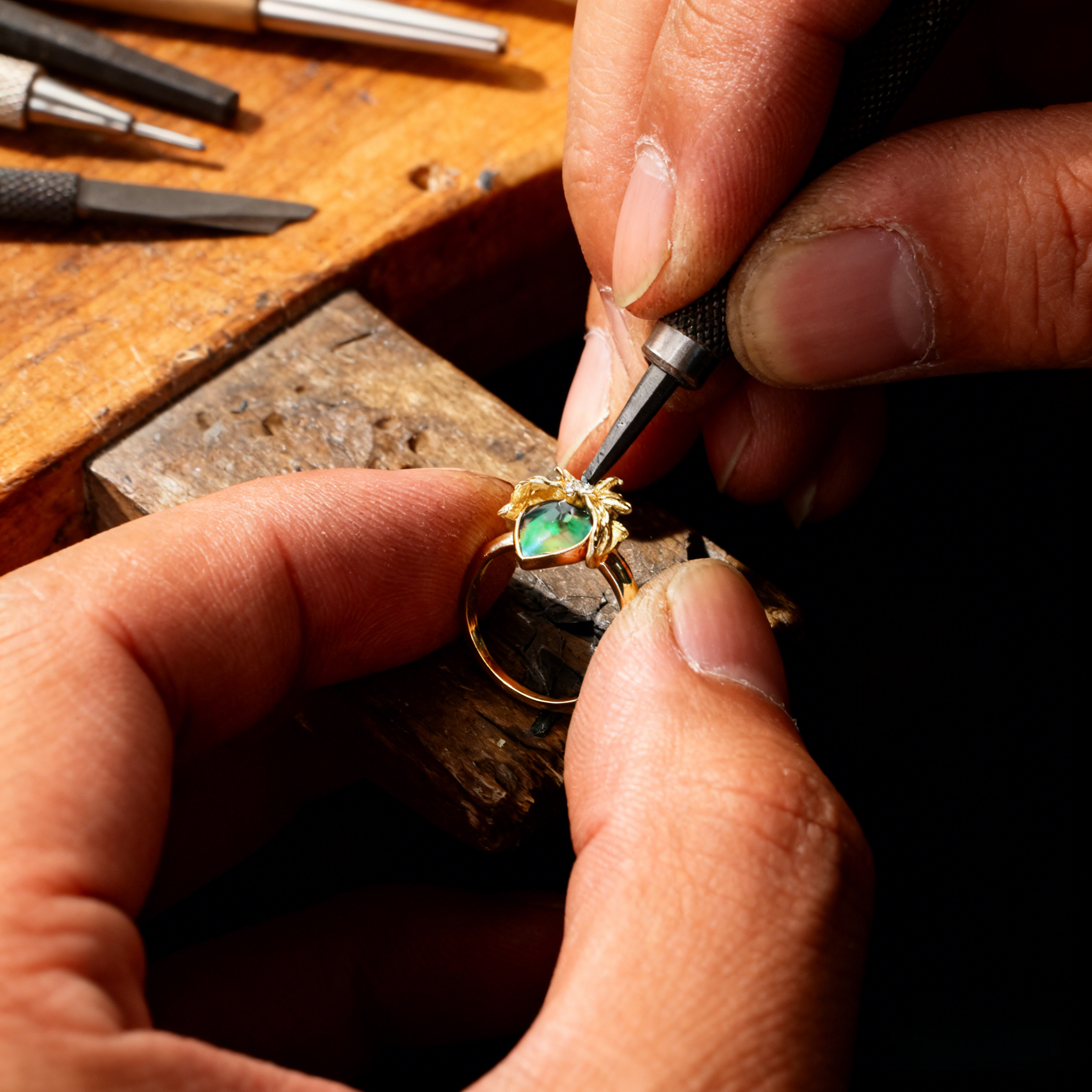 We are a jewelry factory, and all our jewelry is handcrafted by a team of experienced artisans in-house. Each piece undergoes detailed design, carving, polishing, and gemstone setting to ensure the highest quality and precision in every piece.
